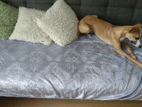 и купила плед и пару простыней в цвете Графит и Кварц .