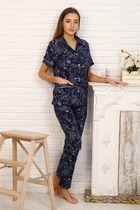 Женская пижама ЖП 024 (T) (Голубой_полоса с принтом)