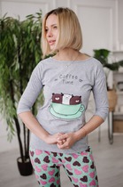 Женская пижама ЖП 057 (T) (Серый_сердечки на мятном)