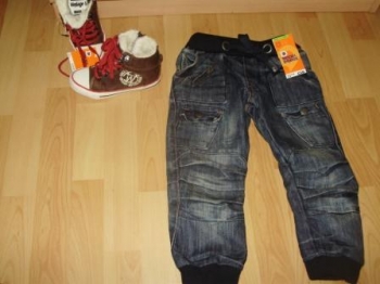 джинсики асда,впритык..размер брали 9-12,нам сейчас 8)) рост хорошо, нашему пузику чуток тесновато,когда сидим.