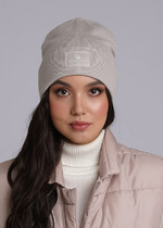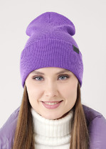 Шапка связаная ластиком, декорирована стильной нашивкой. Подойдёт для осенне- весеннего периода.— Описание у На сайте поставщика