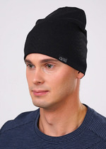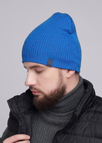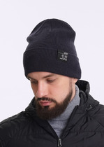 Базовая двойная шапка без отворота, выполнена ластичным переплетением. Декорирована нашивкой логотип.— Описание у На сайте поставщика