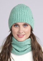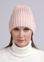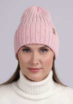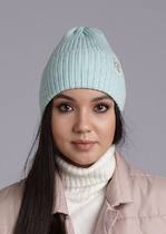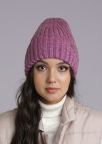 Двойная женская шапка, декорирована нашивкой логотип. Отлично подойдёт для холодной зимы.
