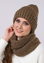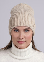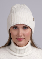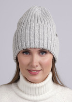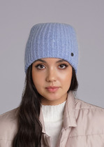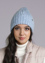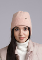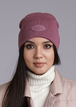 Женская двойная шапка, декорирована нашивкой логотип. Идеально подойдёт для холодной зимы.