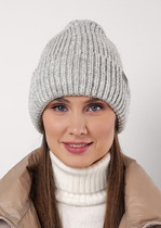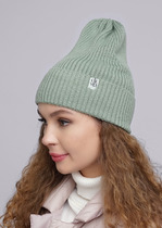Женская двойная шапка, декорирована нашивкой логотип. Отлично подойдёт для зимы.