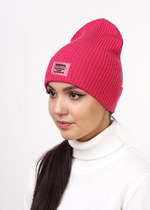 Шапка женская двойная, декорирована стильной нашивкой. Отлично подойдёт для холодной зимы.