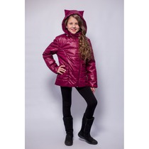 Детская Демисезонная Куртка с ушками на капюшоне Расцветка Вишня