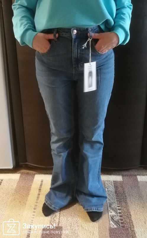 Очень быстрая закупка получилась. Давно искала клеши. На мои ОБ=98 см отлично сели, но длинные. Самый \'смак\' длины придётся отрезать (каблук не ношу). Высокая посадка (для моего возраста \'чуть за 30\') - самое то! Спасибо