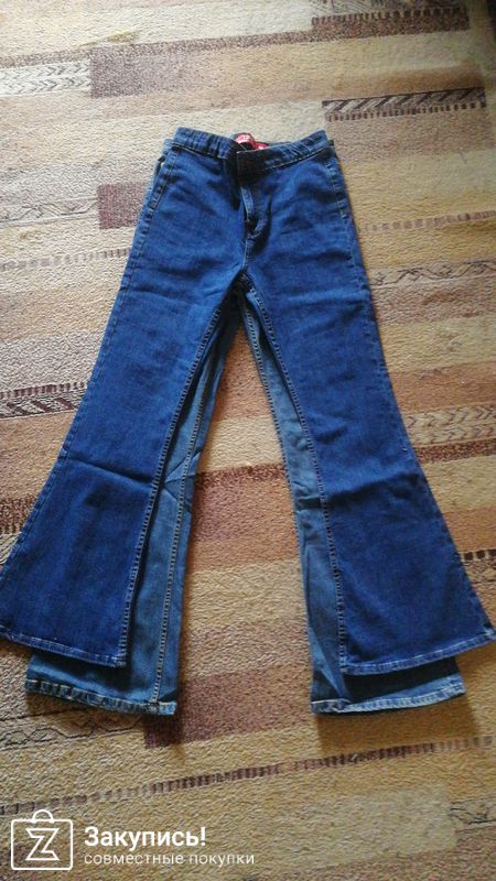 В одном выкупе взяла 2 шт джинс-клеш (светлые и темно-синие). Размер L у обоих. По светлым отзыв ниже. Темно-синие по длине оказались короче (подшивать не надо). У этих джинс нет передних карманов
