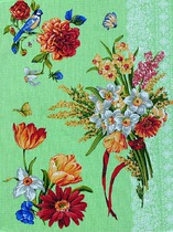 Полотенце вафельное БУКЕТ САЛАТОВЫЙ - василек р-р 50х60