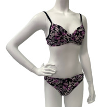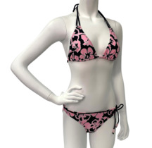 Темный купальник с розовым принтом