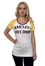 Удлиненная женская футболка Harley-Davidson – бело-желтый микс с замочком и брен