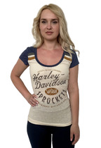 Бежевая женская майка Harley-Davidson – вырез на спинке и легкий дышащий материа