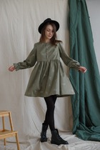 Платье оливковое с мимозами