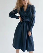 Платье синее с золотой стрекозой