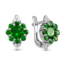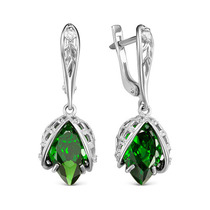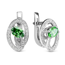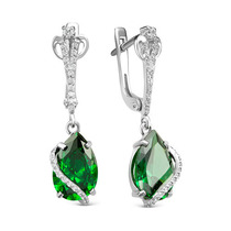 Серебряные серьги с фианитами зеленого цвета - 1274