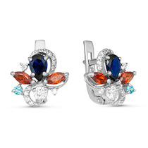 Серебряные серьги с фианитами цвета сапфир,гранат и топаз 029