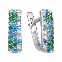 Серебряные серьги с зелеными,голубыми и бесцветными фианитами - 1140