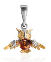 Оригинальное серебряное кольцо с частичным золочением, украшенное янтарём