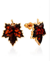 Стильные серьги-гвоздики из позолоченного серебра и вишнёвого янтаря