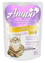 Влажный корм для кошек. Состав: Мясо и субпродукты (курица не менее 35%), злаки, таурин, минеральные вещества, витамины.
