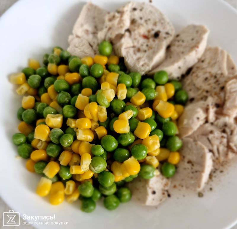 Кукуруза, горошек! Все очень вкусное. Чистое и без ломаных кусочков, без крошки, как в магазинах! Спасибо! Фасовка аккуратная!