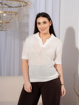 ESENIA Джемпер поло ажурный из вискозы с коротким рукавом №2 - Белый