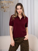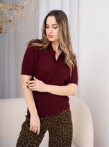 ESENIA Джемпер поло ажурный из вискозы с коротким рукавом №2 - Бордовый