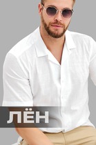 Мужская льняная рубашка с коротким рукавом Happyfox
