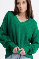 Женский джемпер в рубчик с V-вырезом Happyfox