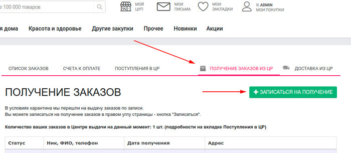 Как записаться на получение заказов: