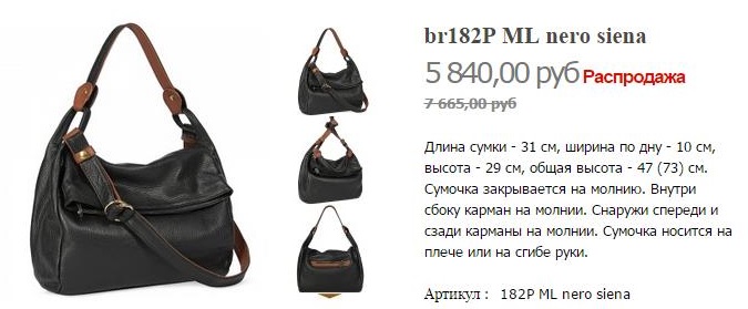 Также до 25 декабря действует дополнительная скидка в размере 25% на следующие бренды женских сумок в разделе "Новинки": Acquanegra, Arcadia, Bruno Rossi, Gironacci, Giudi, Marino Orlandi, Marina Creazioni, Mastro Rocco, Qvinto Corridoni, Renato Angi, Ripani, Tosca Blu.