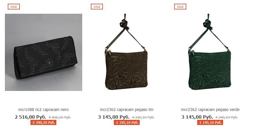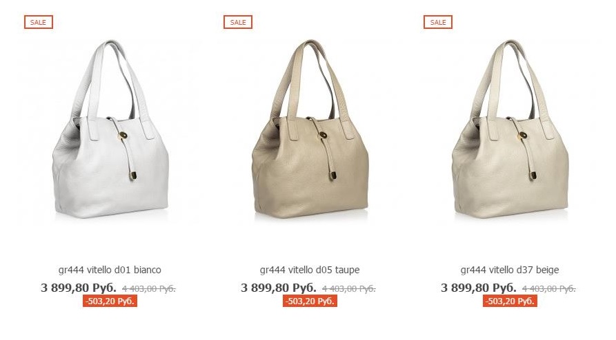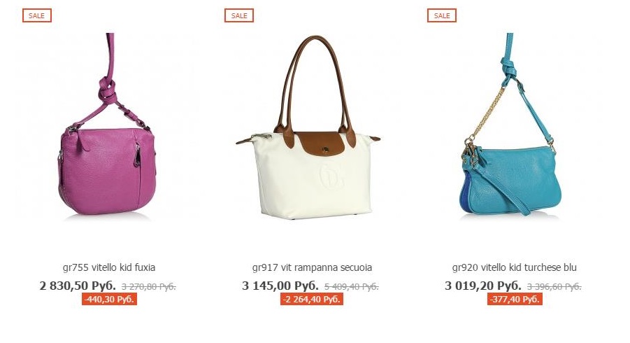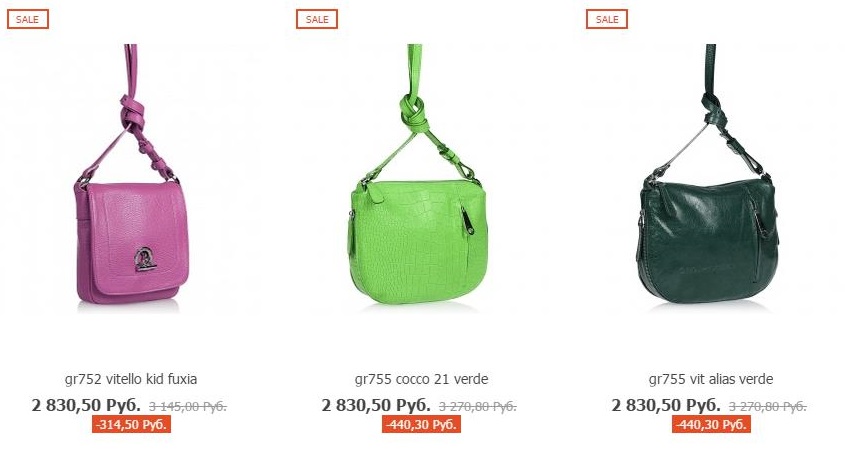 До 20 июля на сумки со значком "Sale" действует дополнительная скидка - 5%.