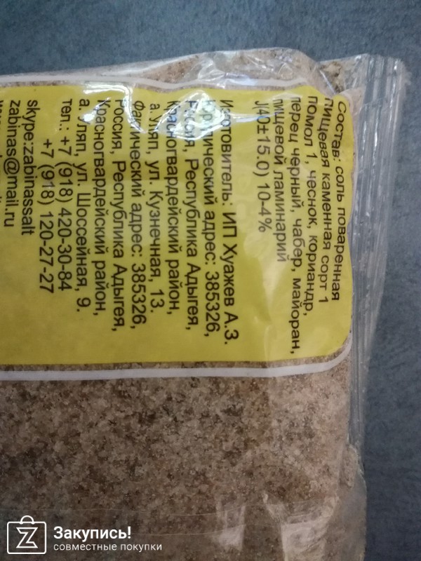 Заказывала на пробу адыгейскую уляпскую соль, почитав хорошие отзывы. Соль со специями, имеет приятный запах, на вкус тоже хорошая, мне понравилась, но не много крупновата по размеру. Ставлю и товару, и организатору по пять баллов.