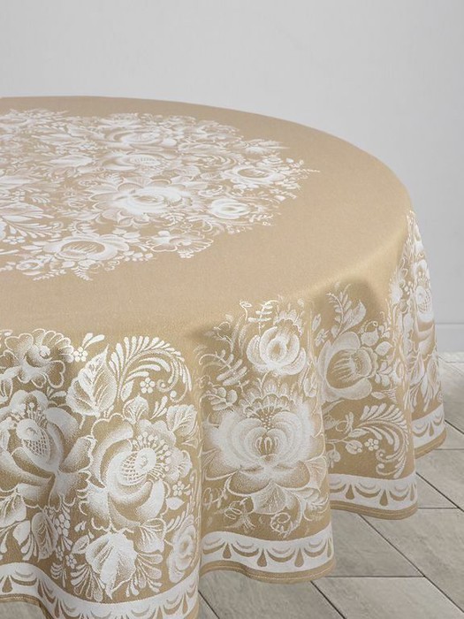Скатерть Премиум круглая "Цветы"-карамель D 178 см. п/лен