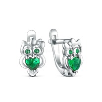 Серьги детские из серебра с эмалью и фианитами родированные - Совушки