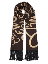 Женский одинарный шарф гладкой вязки, размер 175*25. Украшен фирменной металлической шильдой