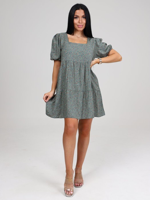 019 ПЛАТЬЕ ЖЕНСКОЕ (Оливковый/цветочки)