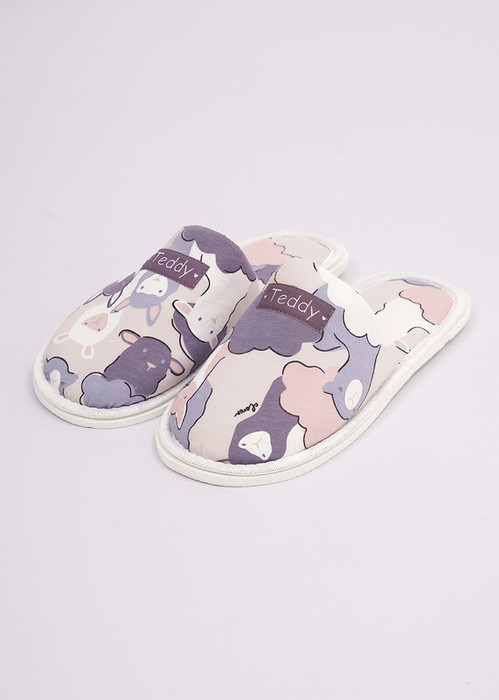 Домашние тапочки с закрытым носом из хлопкового трикотажного полотна, сверху нашивка. Толстая подошва.