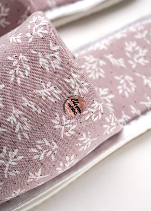 Домашние тапочки с открытым носом из хлопкового трикотажного полотна с эластаном, сверху нашивка. Толстая подошва.