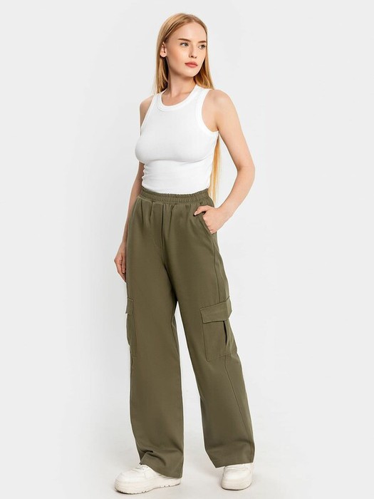 Брюки женские карго свободного силуэта с высокой посадкой на талии из высококачественного хлопка. Ультрамодные брюки карго женские прямого силуэта. Пояс с эластичной тесьмой внутри, декоративными строчками и сборочками. Кроме боковых карманов есть два накладных – с фигурным клапаном. Длина брюк женских широких - классическая, полная. Стильный вариант, который отлично подойдет для городских образов. Универсальная модель с высокой талией для создания луков в офис, университет, на встречу и даже праздничное мероприятие. Дополнить карго легко и просто красивым верхом из линейки базовой одежды для женщин. Модель предназначена для повседневной носки, удобная посадка и уютная длина обеспечивает дополнительный комфорт. Брюки выполнены из прочного дышащего материала высокого качества, вы можете быть уверены в долгой качественной носке. Широкий размерный ряд