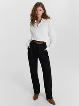 На задних деталях фигурные клапаны. Брюки полной длины и средней посадки.