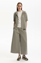 Низ брюк обработан в подгибку с эластичной тесьмой внутри.