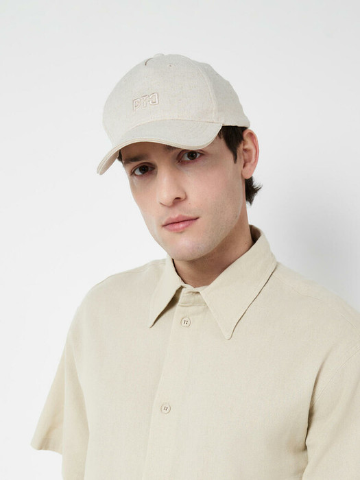 Бейсболка мужская. Модель выполнена из однотонной ткани бежевого цвета и украшена вышивкой. Классическая форма с изогнутым козырьком с контрастным кантом и металлической застёжкой-пряжкой сзади для регулировки размера. Вентиляционные отверстия.