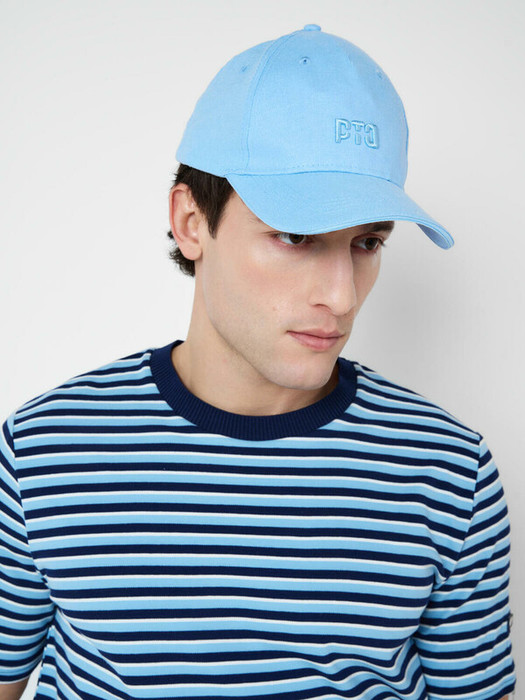 Бейсболка мужская. Модель выполнена из однотонной ткани голубого цвета и украшена вышивкой. Классическая форма с изогнутым козырьком с контрастным кантом и металлической застёжкой-пряжкой сзади для регулировки размера. Вентиляционные отверстия.