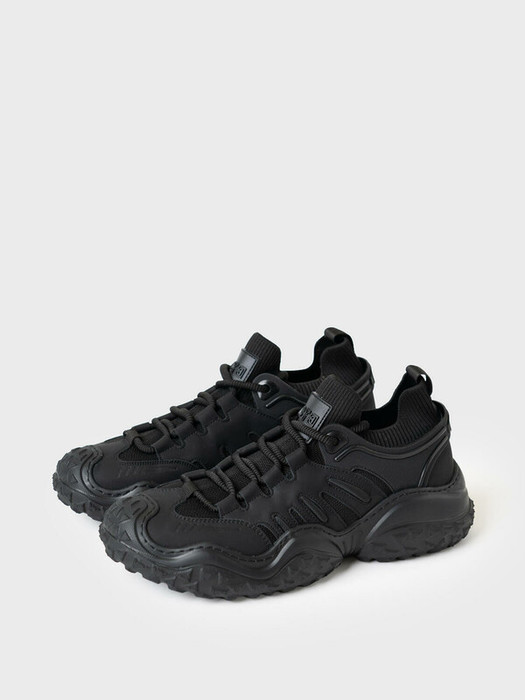 Трендовые кроссовки футуристической формы мужские. Верх кроссовок выполнен по технологии socks из тянущегося дышащего трикотажа. Их можно обувать не развязывая. Нижняя часть защищена крупной ПВХ деталью. Крупные шнурки придают актуальности модели. Стелька - текстильная, съемная. Для придания прочности подошва дополнительно пристрочена к верху.