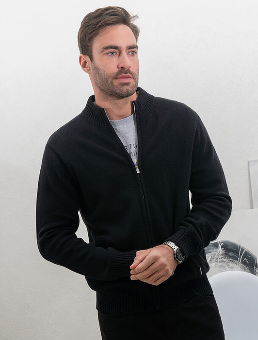 Кардиган плотной вязки из хлопковой пряжи с добавлением акрила. Модель дополнена боковыми карманами и застежкой на металлическую молнию. Изделие гармонично дополнит как повседневный образ, так и нестрогий офисный комплект, с рубашками, футболками или водолазкой. Внизу пришит металлический логотип бренда.
