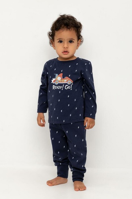 Трикотажная пижама из натурального хлопка. Джемпер с длинными рукавами с эластичными манжетами. У брюк эластичный пояс на резинке. Оригинальная набивка и принт выполнены из стойких, гипоаллергенных текстильных красителей. Пижама сохраняет цвет и форму после многократных стирок. Все трикотажные полотна производятся в соответствии с нормами Швейцарского сертификата ЭкоТекс.