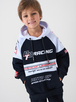 Бомбер с контрастными рукавами для мальчика. Изготовлен из мягкого петельчатого трикотажа. Застёгивается на кнопки. Воротник, манжеты и пояс - вязаные. Спереди карманы с листочкой.