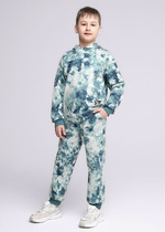 Утепленные джинсы для мальчиков умеренного объёма с 5 ю карманами и металлической фурнитурой. На правой брючине мягкий принт, надпись Хитрый, на левой rubber принт, надпись Я обхитрю тебя. Пояс из рибаны с дополнительной регулировкой внутренним шнуром.